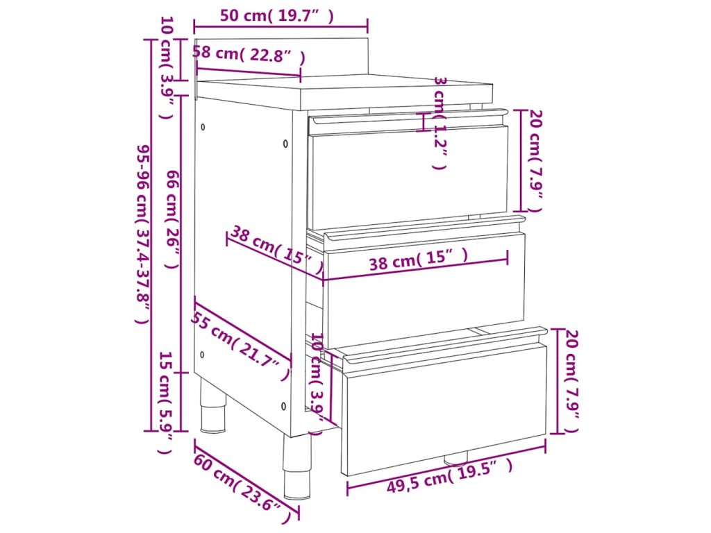 - Rozměry: 50 x 60 x (95–96) cm (Š x H x V)