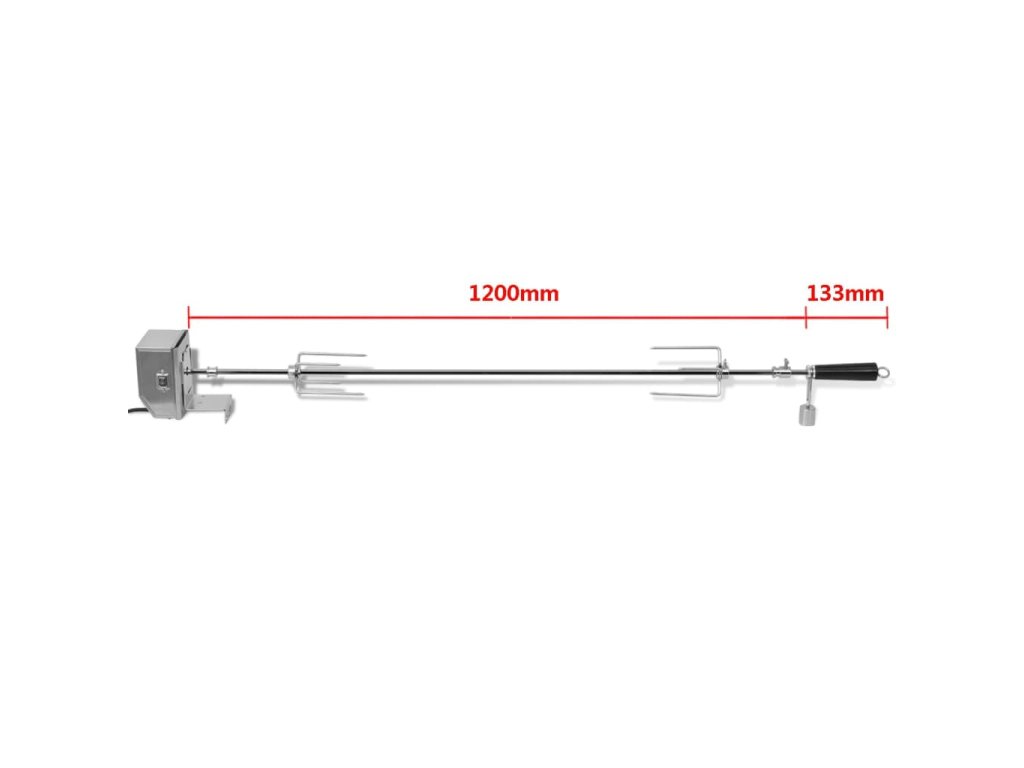 Tento motorem poháněný rožeň se automaticky otáčí, a zajišťuje tak rovnoměrné prohřívání všech potravin, které opékáte. Vzdálenost mezi čtyřbodci se dá nastavit, a přizpůsobit tak potravinám různých velikostí a tvarů; zajišťuje se šrouby. Součástí balení je i vyvažovací závaží, které v případě potřeby vyvažuje jednu stranu rožně. Tato grilovací jehla, vyrobená z vysoce kvalitních materiálů, se snadno čistí a udržuje.