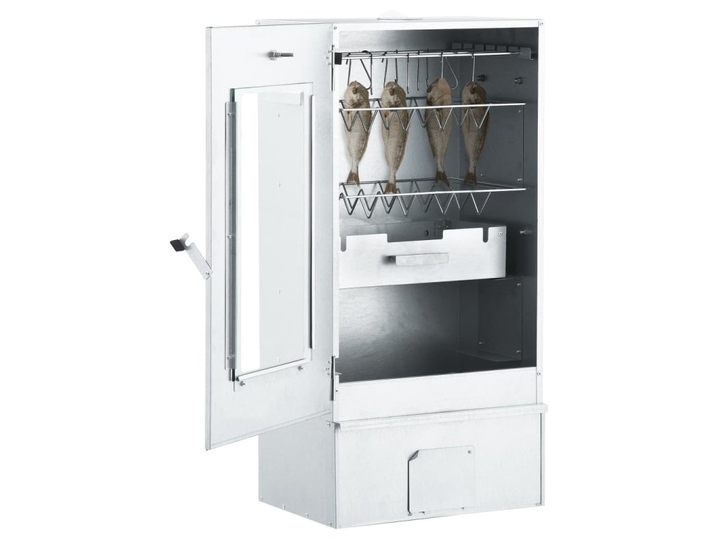 - Dostatek prostoru na uzení: Venkovní udírna poskytuje dostatek prostoru pro uzení masa, ryb, klobás apod. Pomocí přiložených háků ve tvaru písmene S a roštů bude grilování pohodlnější.