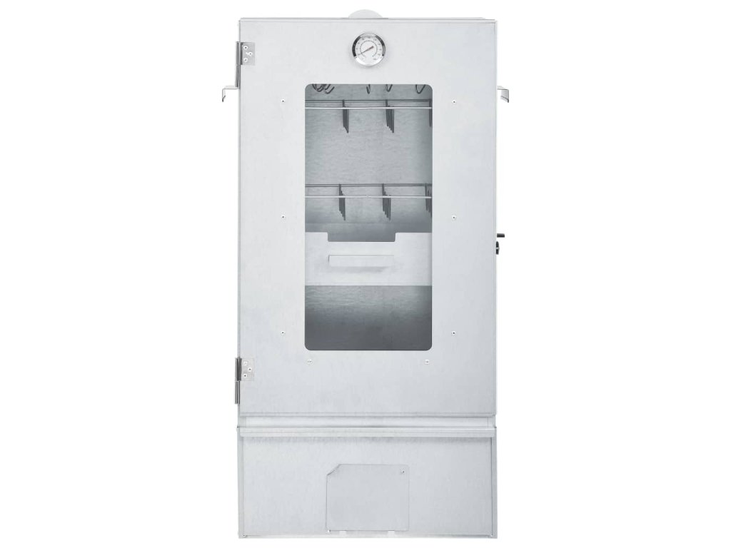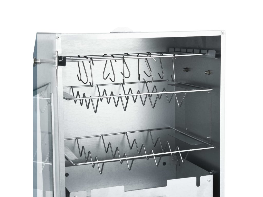 - Indikativní funkce: Udírna je vybavena teploměrem pro kontrolu teploty v komoře. Skrz skleněné okno udírny můžete sledovat pokrm uvnitř a zajistit tak co nejlepší přípravu.