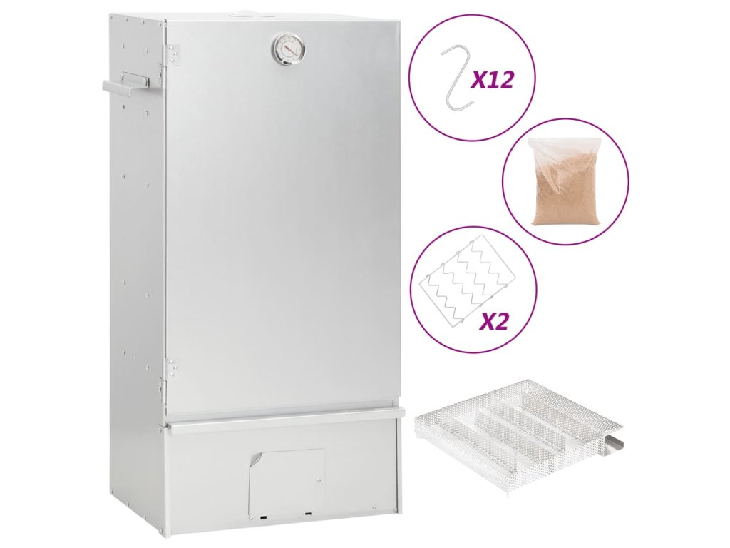 - Dostatek prostoru na uzení: Venkovní udírna poskytuje dostatek prostoru pro uzení masa, ryb, klobás apod. Pomocí přiložených háků ve tvaru písmene S a roštů bude grilování pohodlnější.