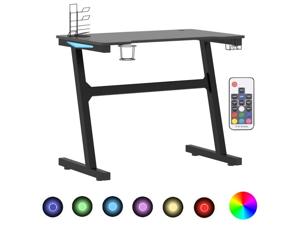 Herní stůl s LED a nohami ve tvaru Z černý 90 x 60 x 75 cm 325418
