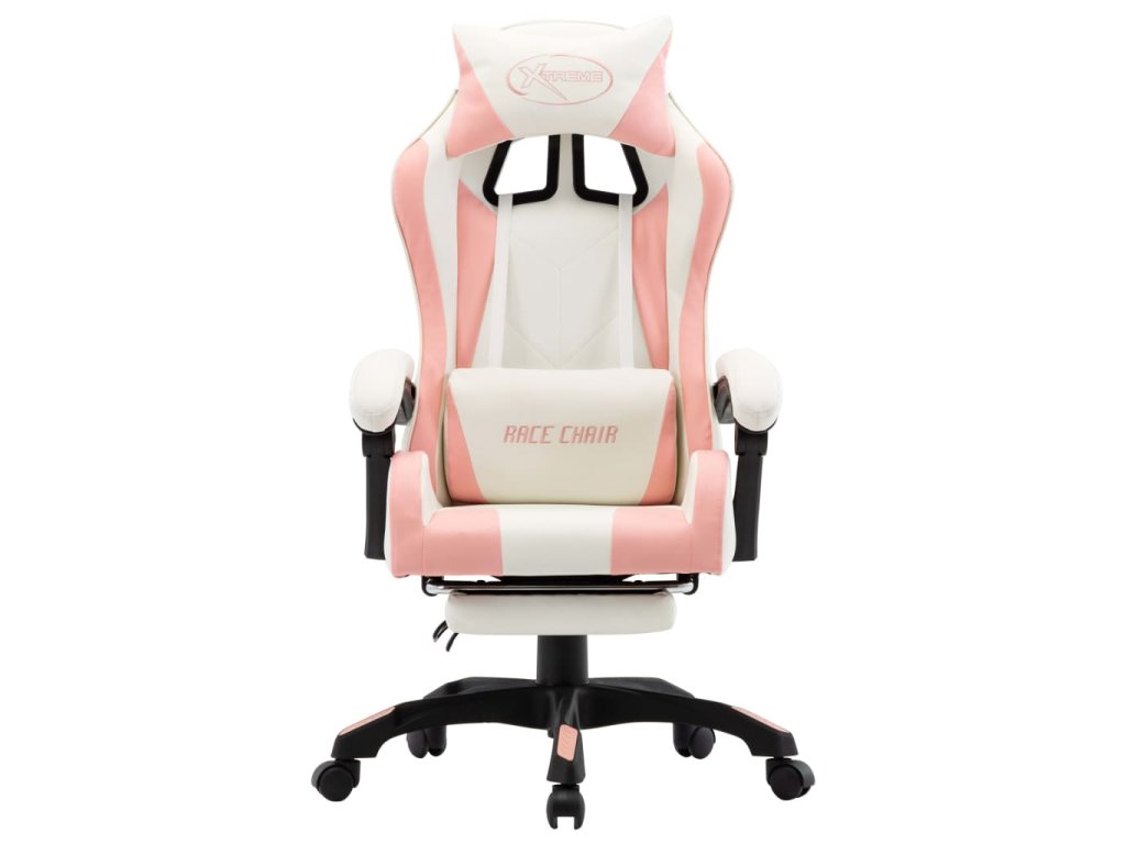 Herní židle s podnožkou růžová a černá umělá kůže 287994