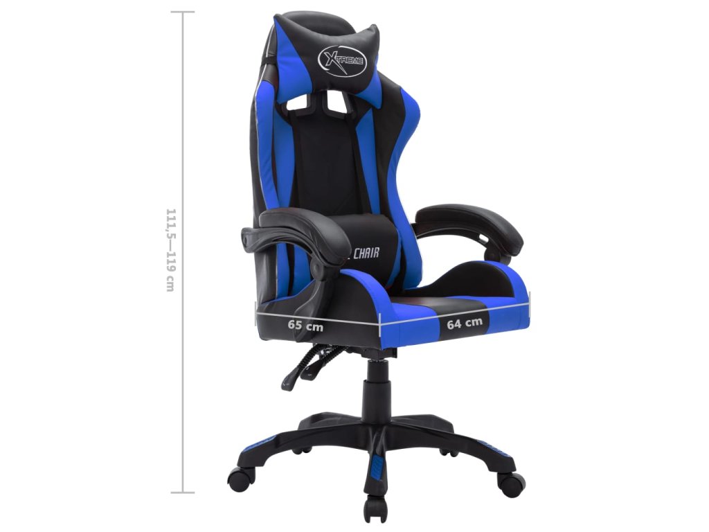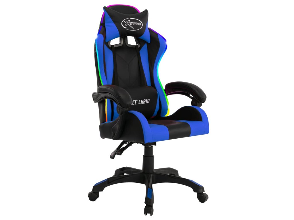 Herní židle s RGB LED podsvícením modro-černá faux kůže 287996