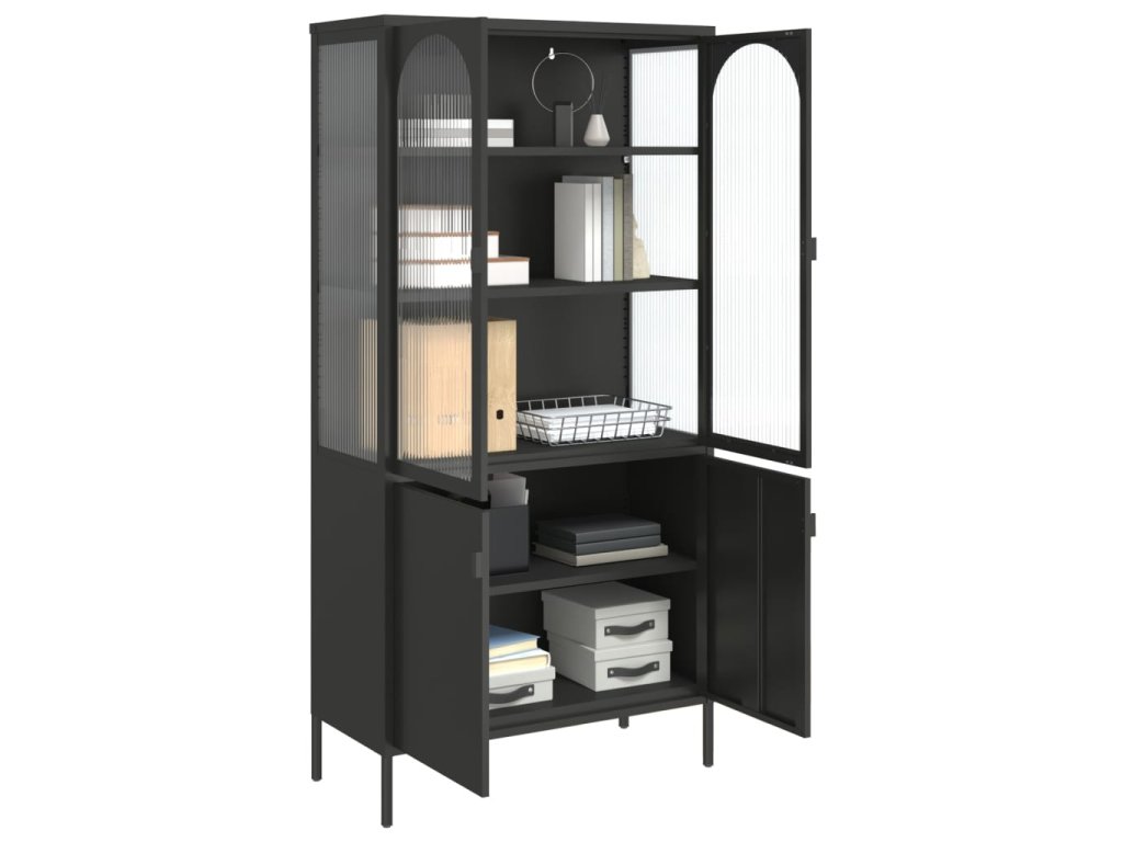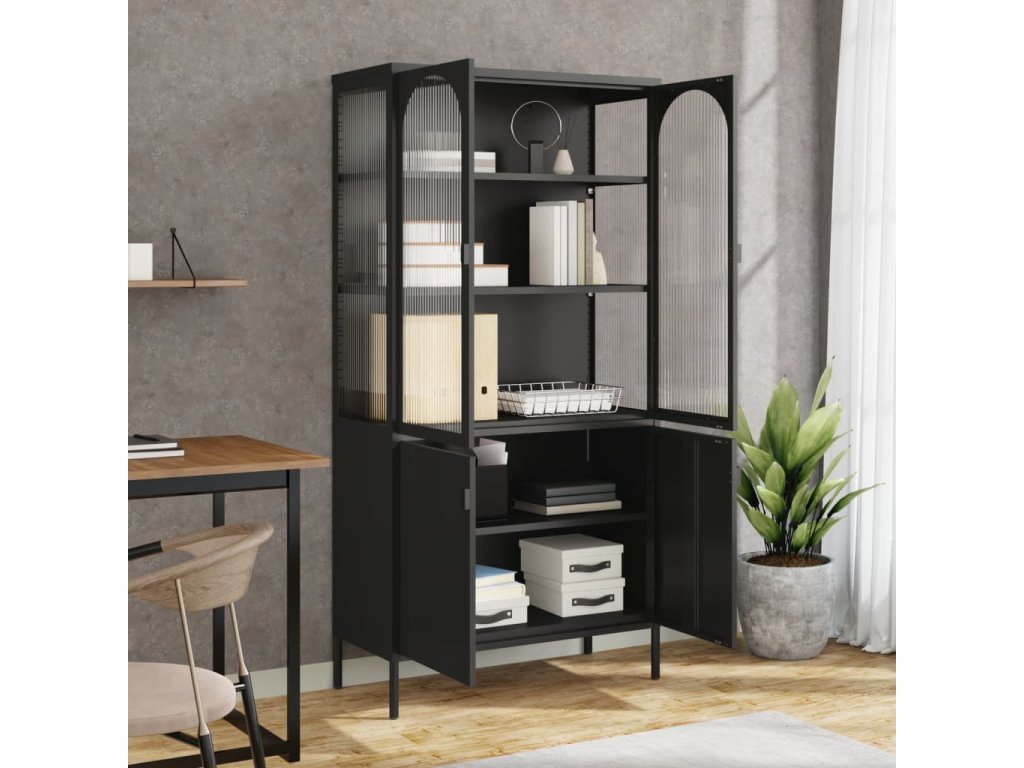 Highboard černý 90 x 40 x 180 cm sklo a ocel 353000