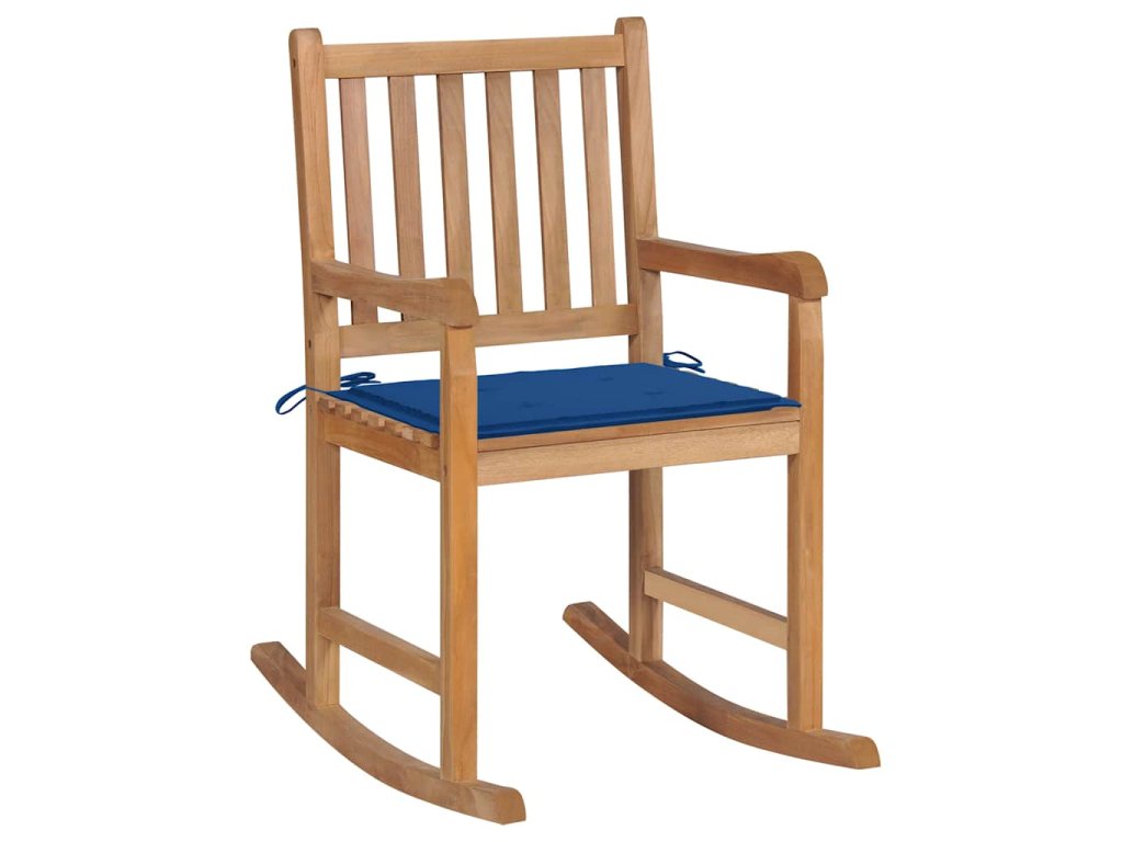 Houpací křeslo s královsky modrou poduškou masivní teak 3062767