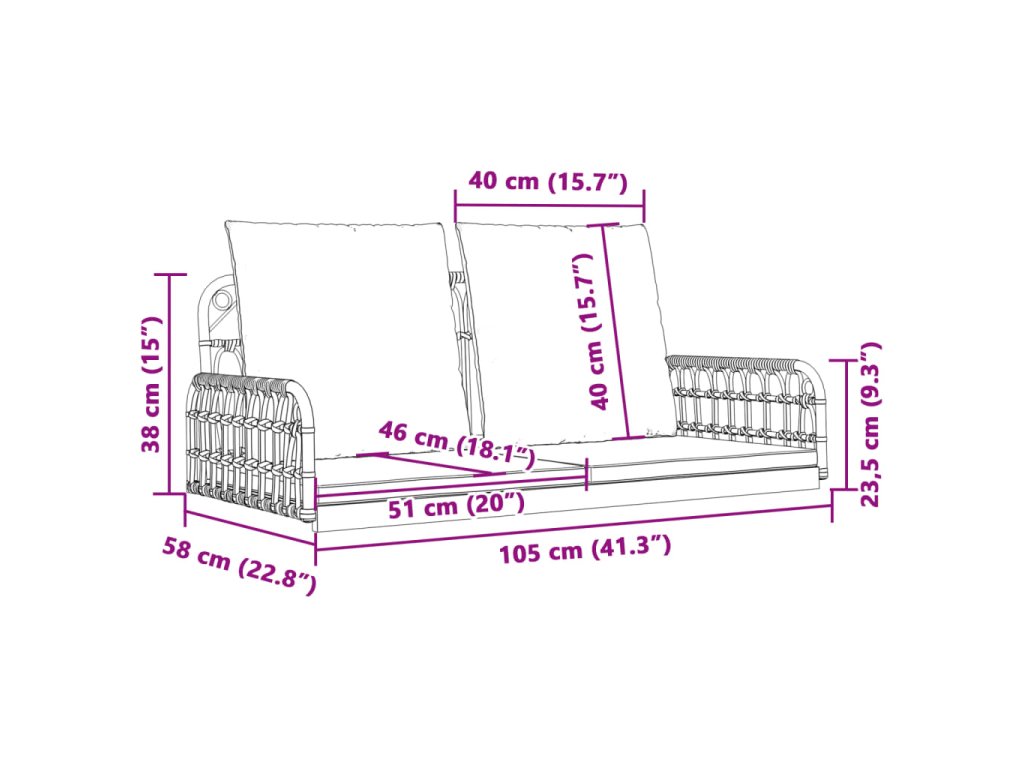 - Rozměry sedáku: 100 x 45 cm (Š x H)