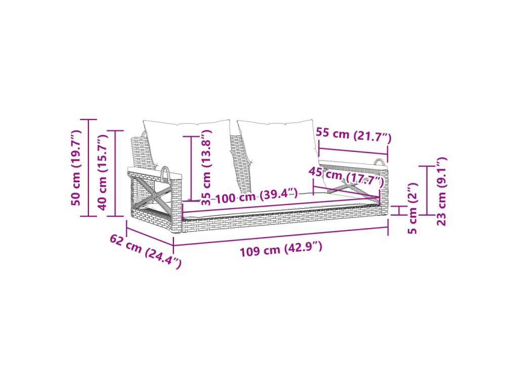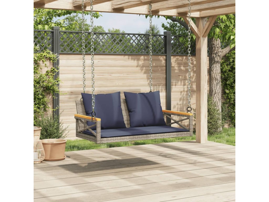 Houpací lavice s poduškami šedá 109 x 62 x 40 cm polyratan 368159