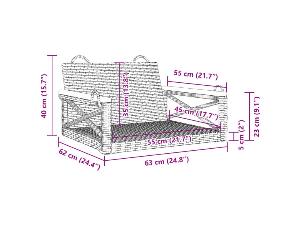Houpací lavice šedá 63 x 62 x 40 cm polyratan 368171