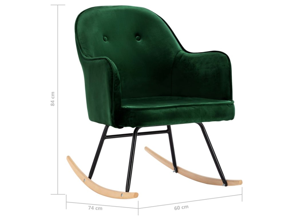 Houpací křeslo je čalouněné sametovým materiálem a je vyrobené z práškově lakovaného železného rámu, a proto je stabilní a zároveň měkké. Silně polstrovaný sedák zaručuje extra pohodlí při odpočinku v tomto houpacím křesle. Nohy z bukového dřeva navíc zajišťují vysokou stabilitu. Křeslo, designované s dlouhými houpacími nohami, se jen tak nepřeklopí.