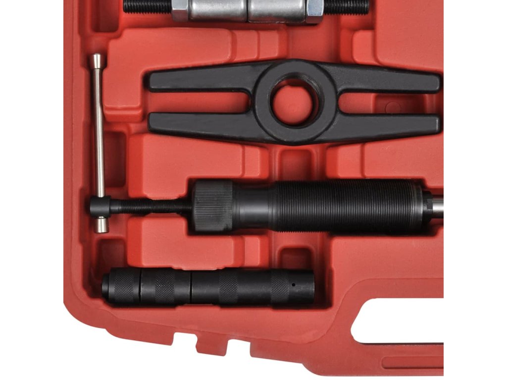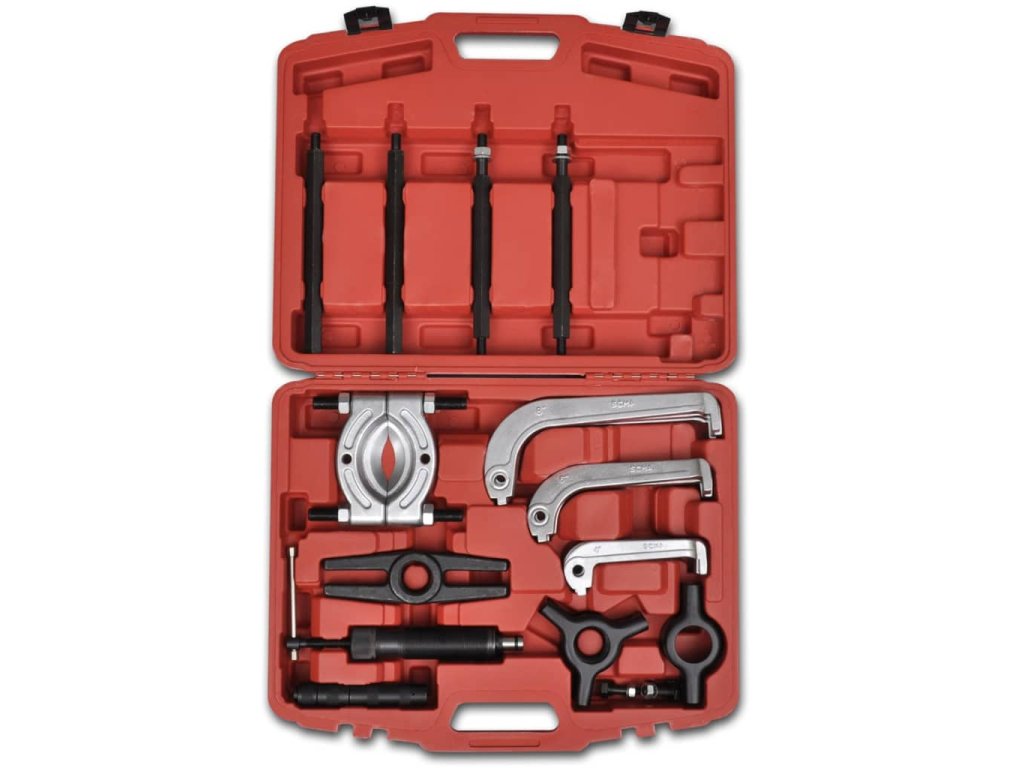 Tento hydraulický set stěhováky a oddělovačů je ideální pro údržbu železničních vozidel , mechanické montáže, doly a továrny na údržbu tím , pro odstranění kladek , ložisek , převodů a dalších komponentů . Tato sada obsahuje : 1 x oddělovač ložiska , 1 x nosník , 1 x adaptér středu , 1 x třílůžkový hlava , 1 x dvoulůžkový hlava, 3 x 4 " stěhovák nohy , 3 x 6 " stěhovák nohy , 3 x 8 " stěhovák nohy , 1 x píst díl , 1 x 2 " prodlužovací tyč , 1 x 4 " prodlužovací tyč , 4 x 8 " prodlužovací tyč , 1 x 10 tun hydraulický píst a 3 x šroub . Kufr je dobře navržen pro dlouhou životnost při každodenním používání a pro snadnou přepravu .