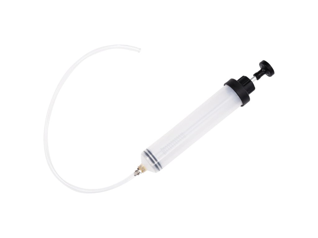 Stříkačka na olej a kapaliny má průsvitné tělo pro snadnou kontrolu olejů a kapalin a její zakrytá koncová část zabraňuje rozlití. Pro snadnější práci je víceúčelová stříkačka vybavená ohebnou hadicí.