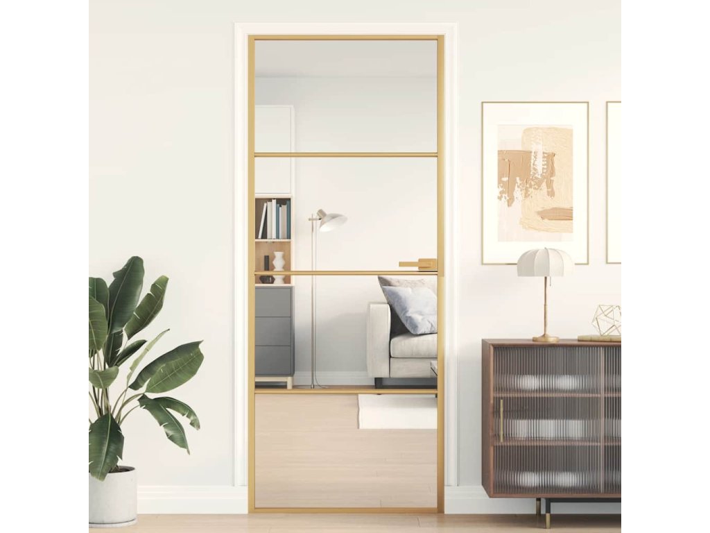 Interiérové dveře úzké zlaté 83x201,5 cm tvrzené sklo a hliník 155133