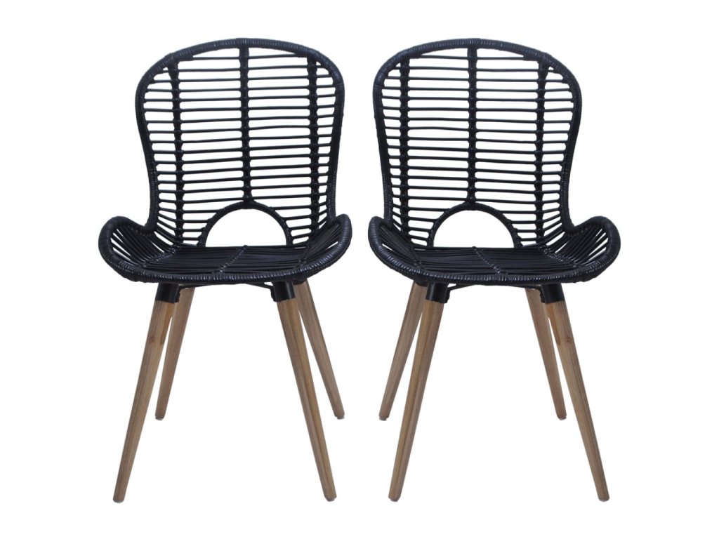Sedák a opěradlo jsou zhotoveny z přírodního ratanu, židle jsou proto voděodolné a snadno se čistí. Dřevěné nohy zajišťují stabilitu a odolnost této sady nábytku a propůjčují jí vintage styl. Tyto židle skvěle zapadnou do jakéhokoli interiéru a navíc se snadno sestavují. Balení obsahuje 2 jídelní židle.