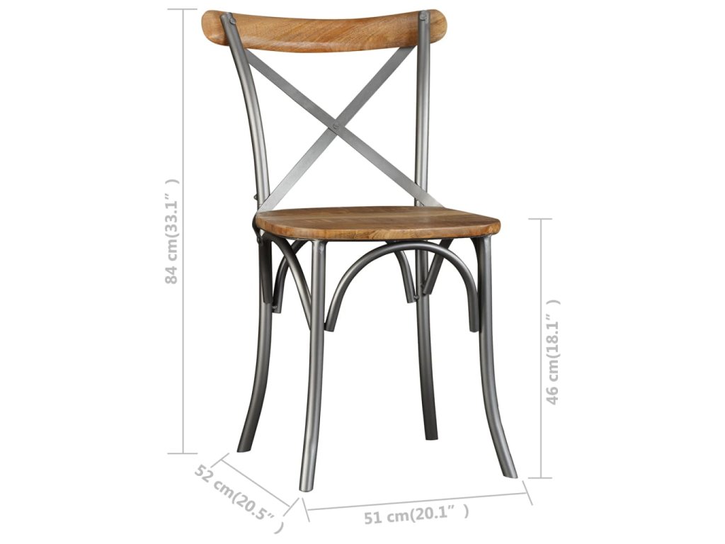 Sedadla a opěradla jsou vyrobena z masivního mangovníkového dřeva. Krásné dřevěné zrno dodává rustikální kouzlo a dělá každou z našich židlí jedinečnou a trochu odlišnou od další. Robustní ocelové rámy nejen dělají židle extrémně robustní a odolné, ale také doplňují průmyslový vzhled.