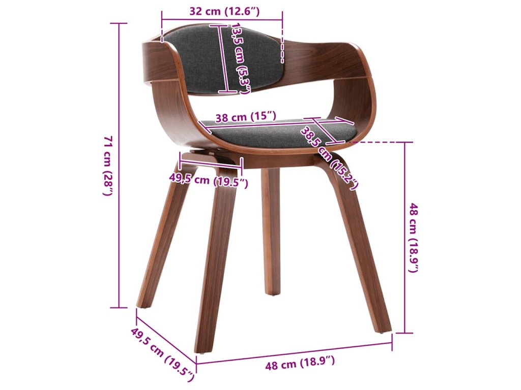Jídelní židle je potažená měkkou látkou a dobře polstrovaná, aby se vám na ní co nejlépe sedělo. Robustní rám z ohýbaného dřeva zdůrazňuje její jedinečnou krásu a styl. Vzhledem k ergonomickému tvaru židle se na ní můžete pohodlně uvelebit i na celé hodiny. Jedná se o perfektní volbu ke stolování, povídání, čtení, sledování televize nebo jen tak k odpočinku.