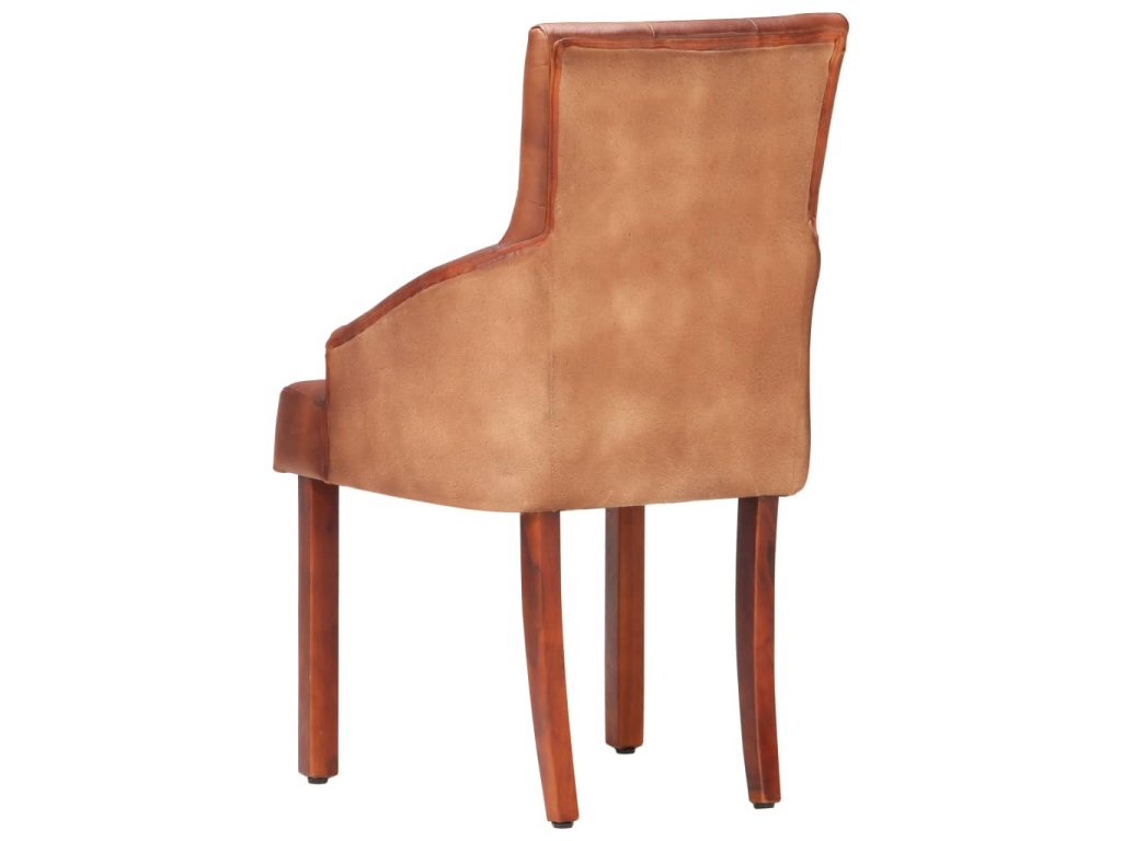 Tyto židle jsou čalouněné odolnou pravou kozí kůží, takže vám poskytnou vynikající zážitek ze sezení. Jídelní židle podepírají nohy z masivního akáciového dřeva, což jim dodává na stabilitě a robustnosti.