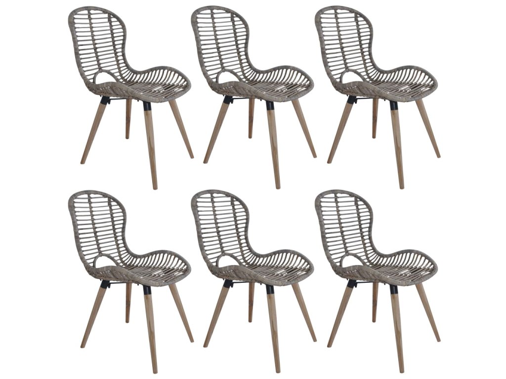 Sedáky a opěradla židlí jsou z přírodního ratanu, který je voděodolný a snadno se čistí. Dřevěné nohy zajišťují stabilitu a odolnost této sady nábytku, a také zdůrazňují její vintage styl. Tyto židle krásně zapadnou do každého prostředí a jejich sestavení je snadné. Balení obsahuje 6 jídelních židlí.