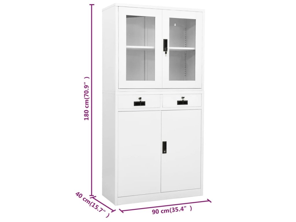 Kancelářská skříň bílá 90 x 40 x 180 cm ocel a tvrzené sklo 336421