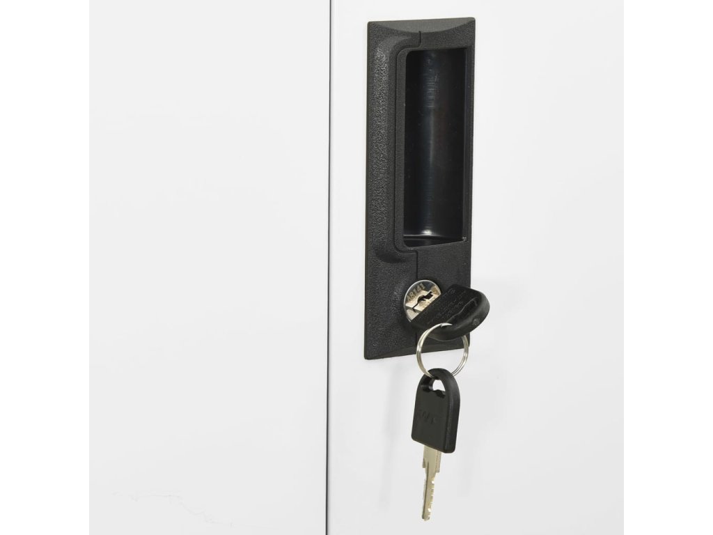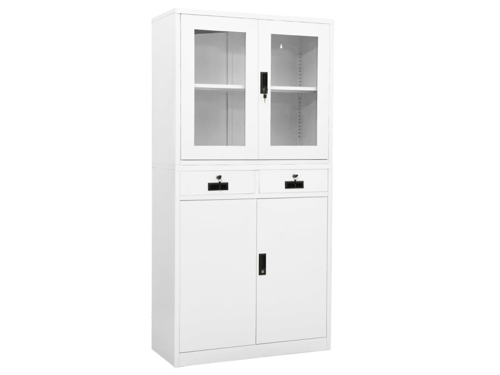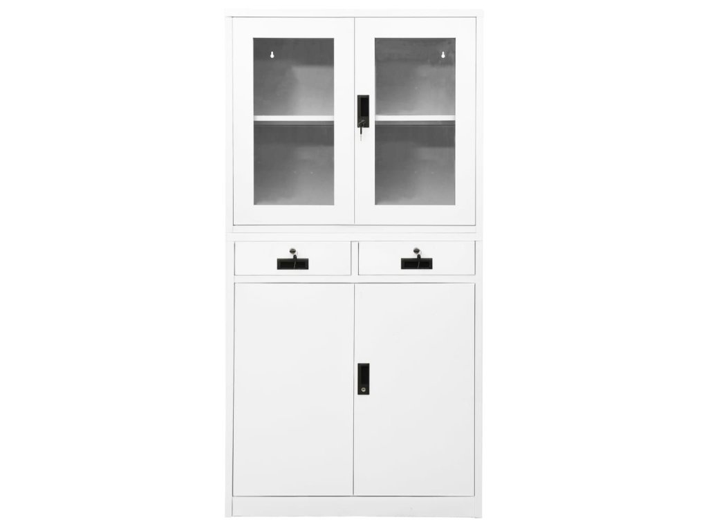 Tato kancelářská skříň je vyrobena z oceli, takže je odolná a snadno se čistí. Uvnitř najdete 3 nastavitelné police, takže můžete snadno a úhledně třídit soubory do různých kategorií a mít je v bezpečí. Horní 2 dvířka mají tvrzené sklo, takže snadno najdete požadované soubory. Zásuvky s 3dílnými pojezdy s kuličkovými ložisky zajišťují hladké otevírání a zavírání i při zvýšené zátěži. Se svým ikonickým designem se tato skříň bude hodit do každé kanceláře.