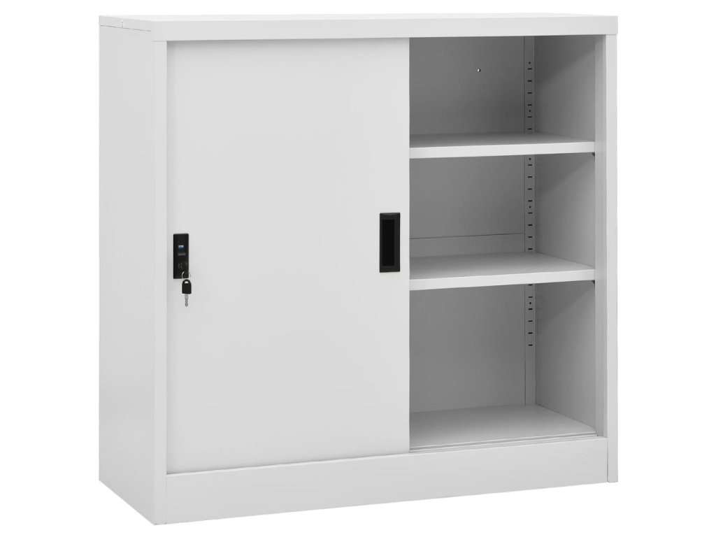 Kancelářská skříň posuvné dveře světle šedá 90x40x90 cm ocel 335951
