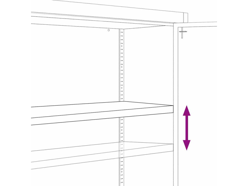 - Nastavitelná police: Úložná skříňka je vybavena nastavitelnou policí, která umožňuje přehledné třídění souborů do různých kategorií.