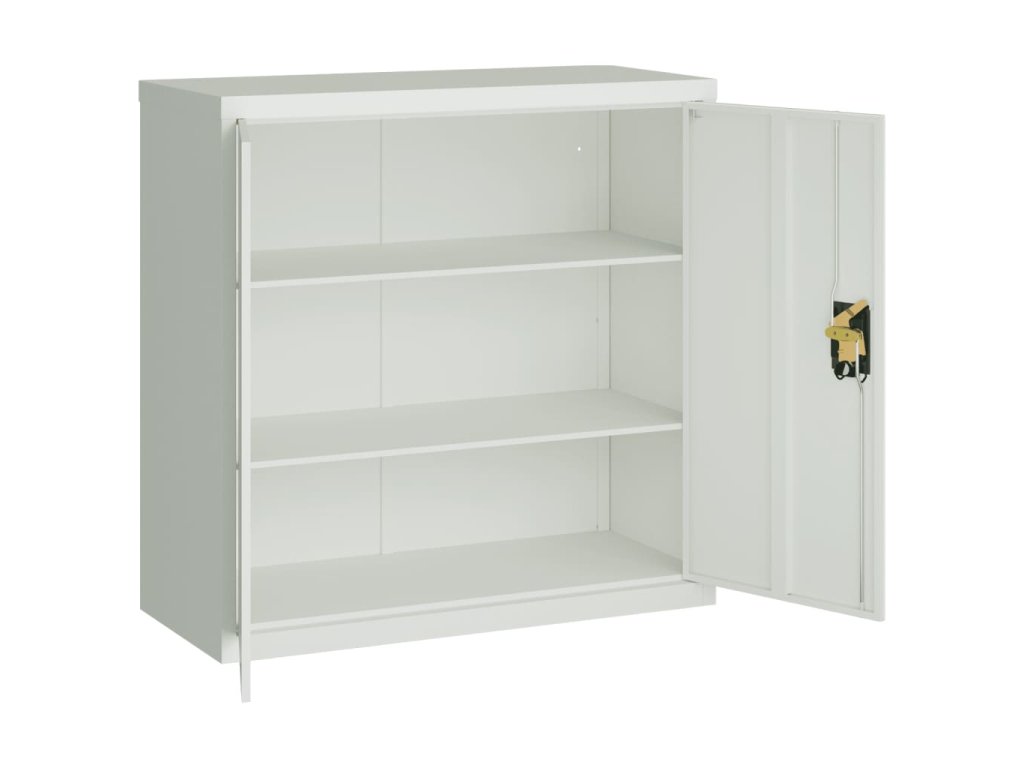- Nastavitelné police: Úložná skříňka je vybavena 2 nastavitelnými policemi, které umožňují přehledné třídění souborů do různých kategorií.