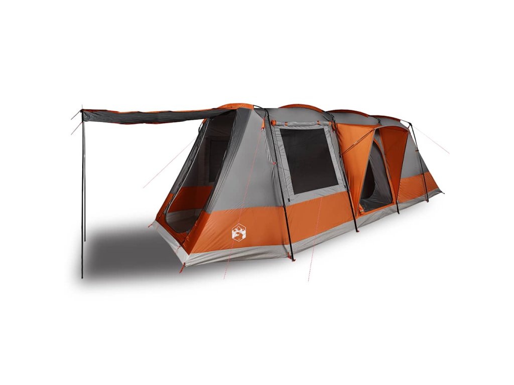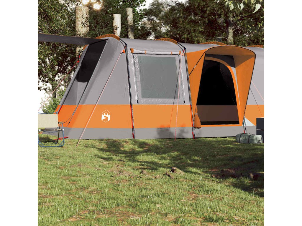Kempingový stan tunel pro 4 osoby šedý a oranžový nepromokavý 94630