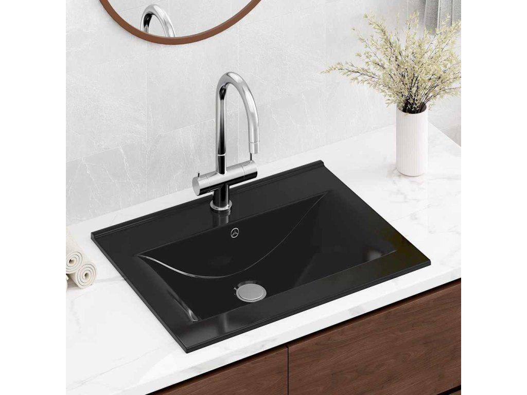 Keramické umyvadlo obdélníkové černé s otvorem na baterii 60 x 46 cm 140687