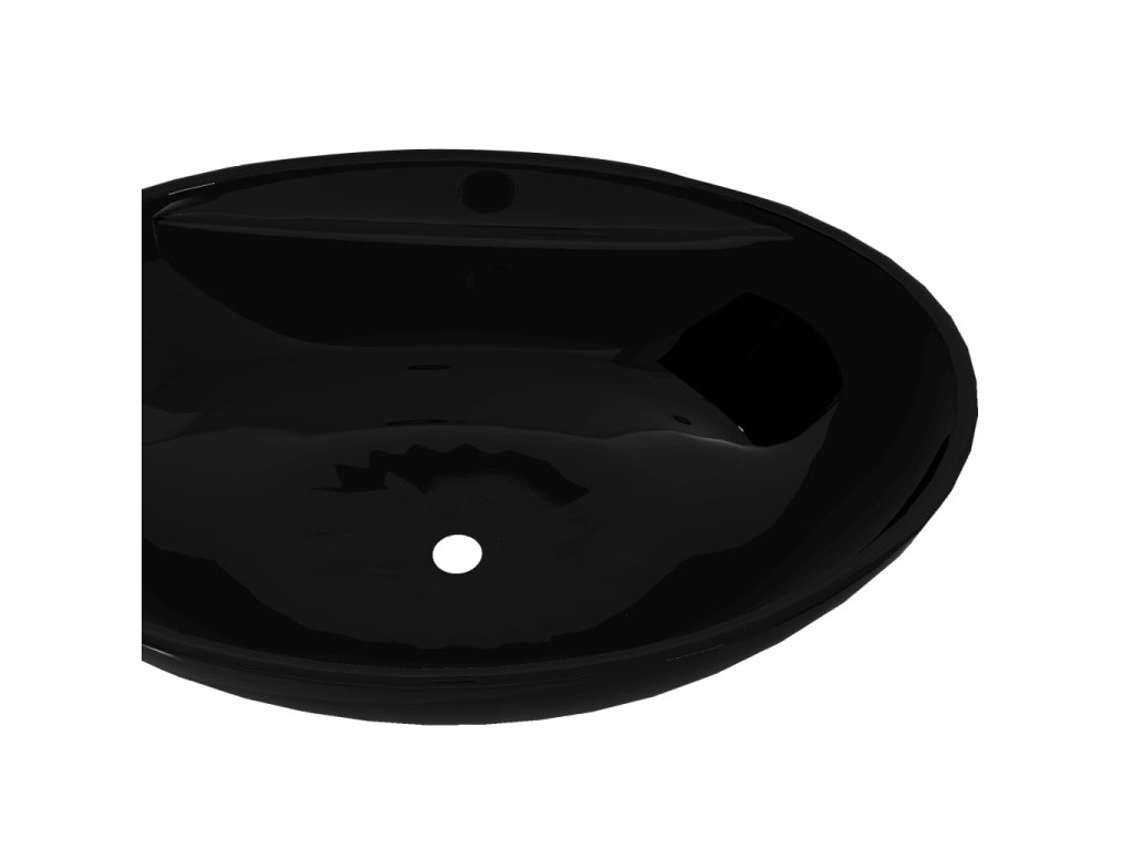 Keramické umyvadlo s otvorem na baterii a přepadem, černé oválné 141921