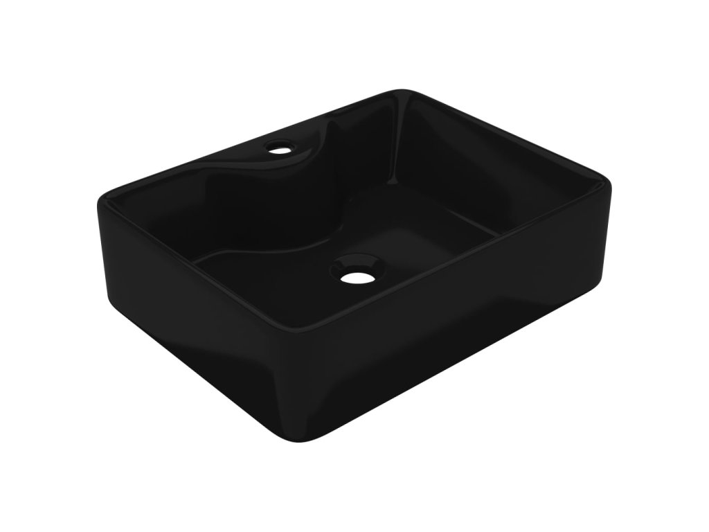 Keramické umyvadlo s otvorem na baterii černé čtvercové 141937