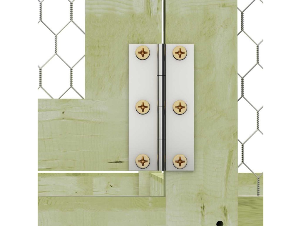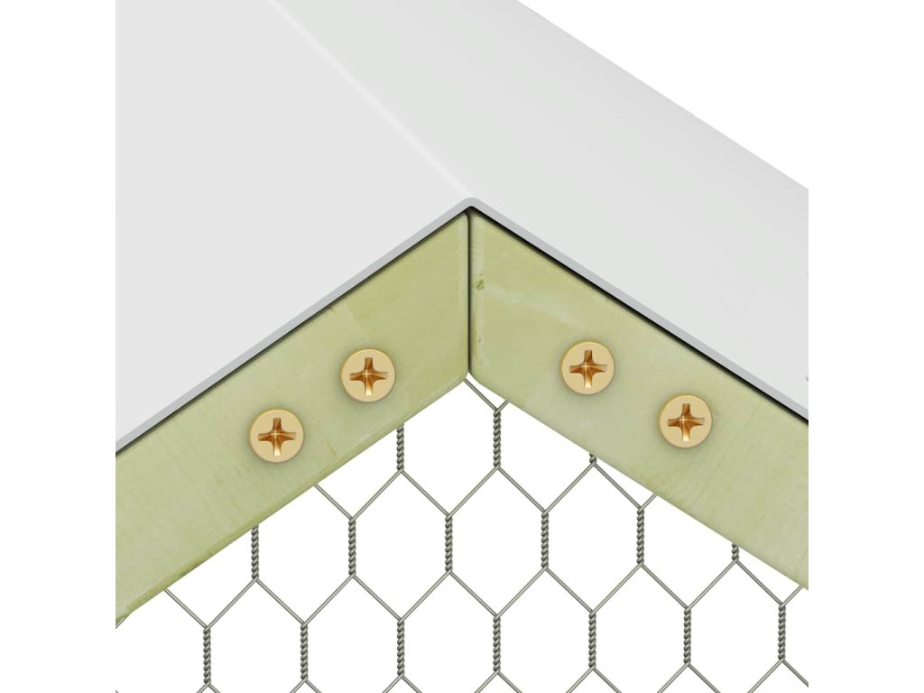 Kurník je zhotovený z borového dřeva, má skvělou životnost a nepodléhá klimatickým vlivům ani hnilobě. Střecha ze 100% polyesteru je voděodolná. Dvířka, která se hladce otvírají, lze zajistit západkami, takže vaše zvířata zůstanou v bezpečí. Jelikož klec tvoří pletivo z pozinkované oceli, můžete svá zvířata snadno sledovat. Klec pro drůbež je třeba sestavit.