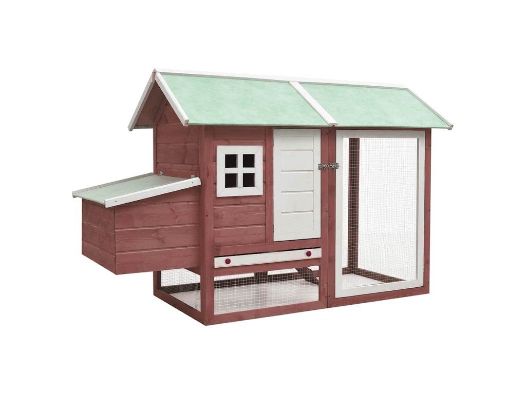 Pletivová konstrukce z železných drátů vám umožní kuřata neustále sledovat a zajistí v kleci volné proudění čerstvého vzduchu. Kurník tvoří vysoce kvalitní dřevěný rám, který vám bude sloužit po dlouhá léta. Zelená střecha chrání obyvatele před deštěm a v útulném domečku se krásně vyspí. Ze spodního do horního patra vede rampa, po níž mohou zvířata snadno vyšplhat nahoru. Výsuvné dno klece usnadňuje její čištění. Dvířka lze jednoduše zavřít a zajistit zasouvacími západkami.