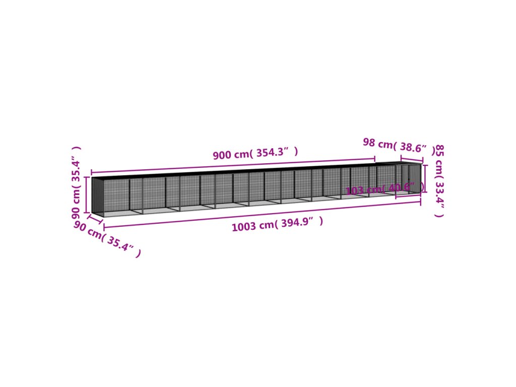 - Celkové rozměry: 1 003 x 98 x 90 cm (D x Š x V)