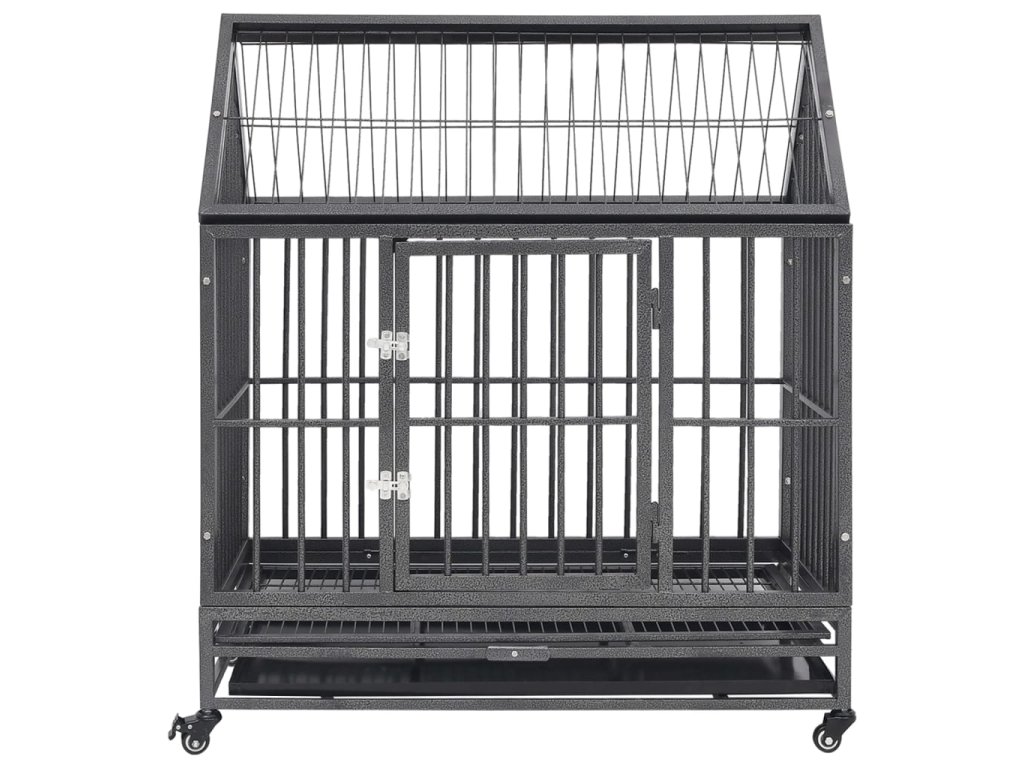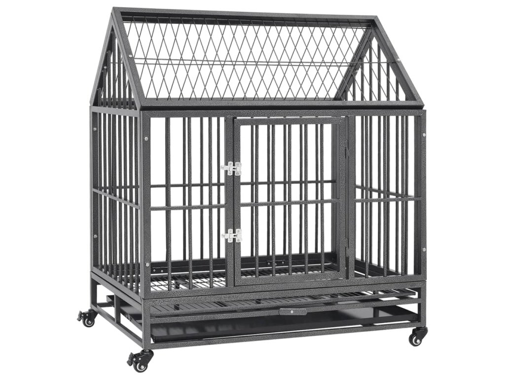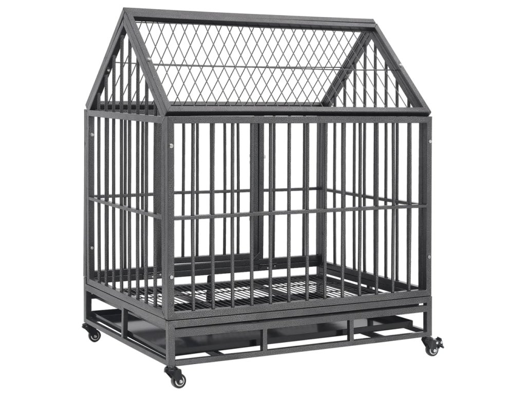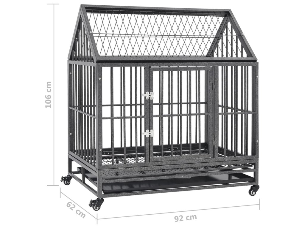 Klec pro psy s kolečky a stříškou ocel 92 x 62 x 106 cm 171493