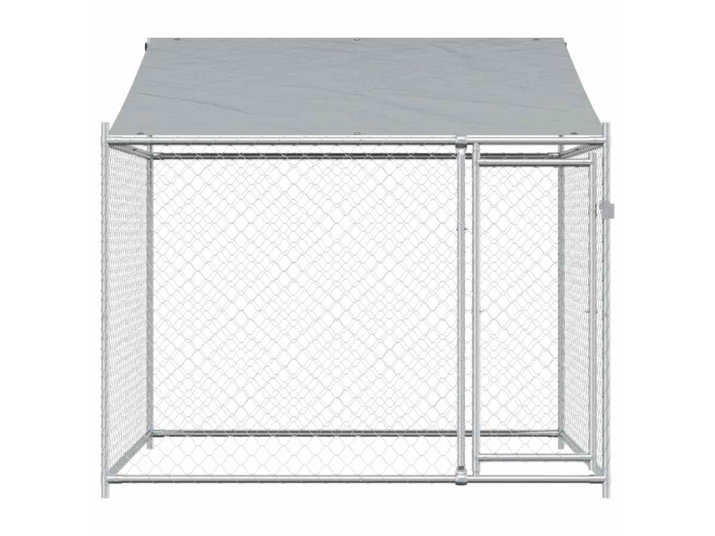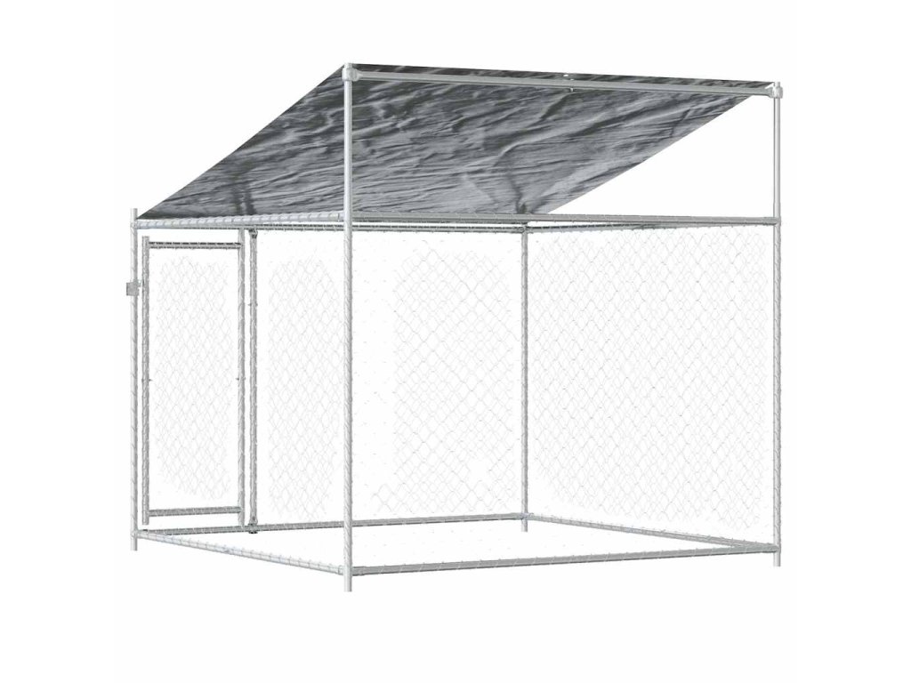Klec pro psy se střechou a dvířky šedá 2x2x2 m pozinkovaná ocel 172559