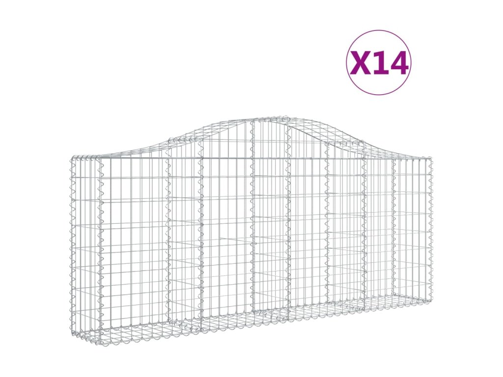 Klenuté gabionové koše 14ks 200x30x80/100 cm pozinkované železo 3145421