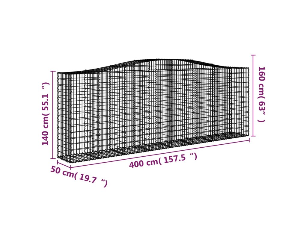 Klenuté gabionové koše 2 ks 400x50x140/160cm pozinkované železo 3145982
