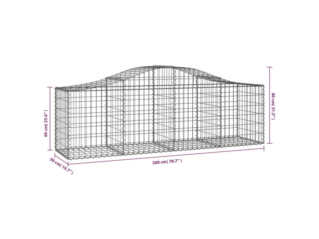 Klenuté gabionové koše 20 ks 200x50x60/80 cm pozinkované železo 3145613