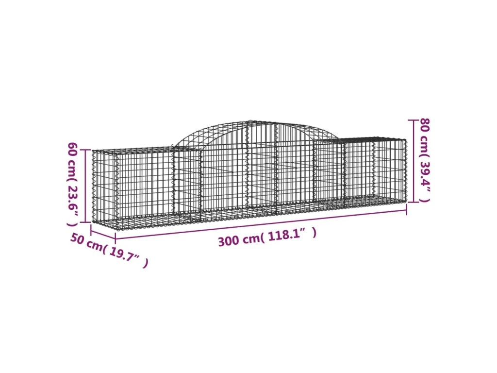 Klenuté gabionové koše 25 ks 300x50x60/80 cm pozinkované železo 3146680