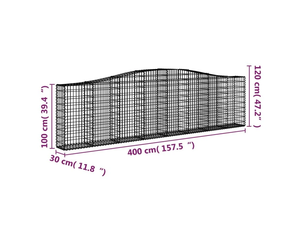 Klenuté gabionové koše 25ks 400x30x100/120cm pozinkované železo 3145837