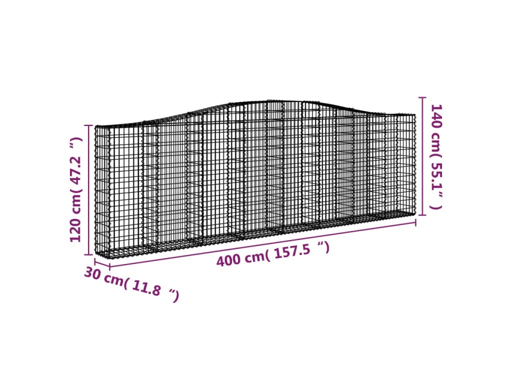 - Stabilní konstrukce: Klenutá gabionová klec je určená k naplnění kamením nebo štěrkem, aby byla dostatečně stabilní.