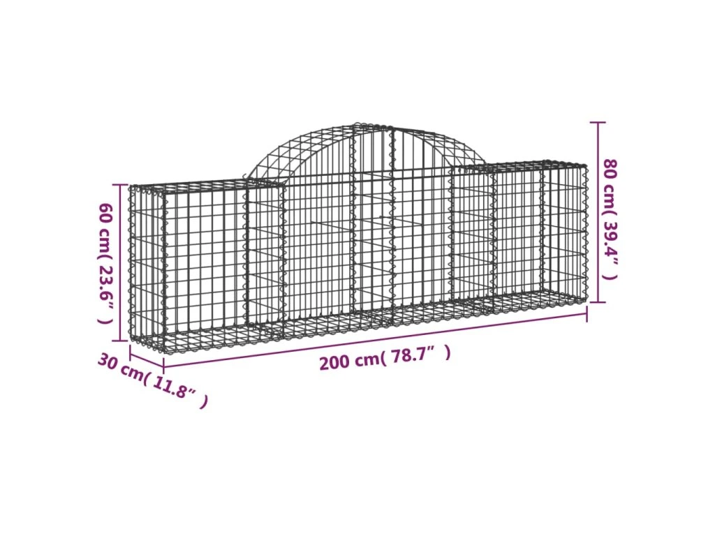 Klenuté gabionové koše 4 ks 200x30x60/80 cm pozinkované železo 3146070