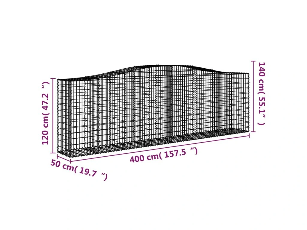 - Stabilní konstrukce: Klenutá gabionová klec je určená k naplnění kamením nebo štěrkem, aby byla dostatečně stabilní.