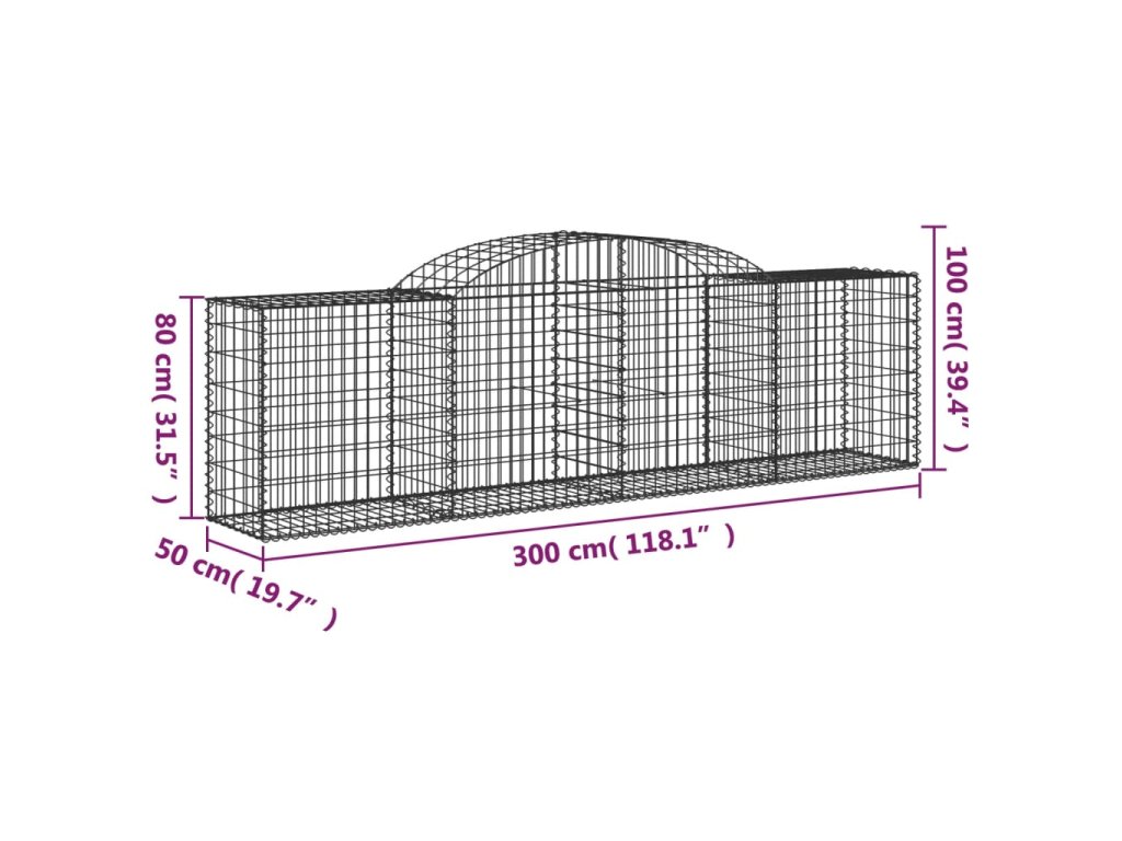 Klenuté gabionové koše 7 ks 300x50x80/100 cm pozinkované železo 3146688