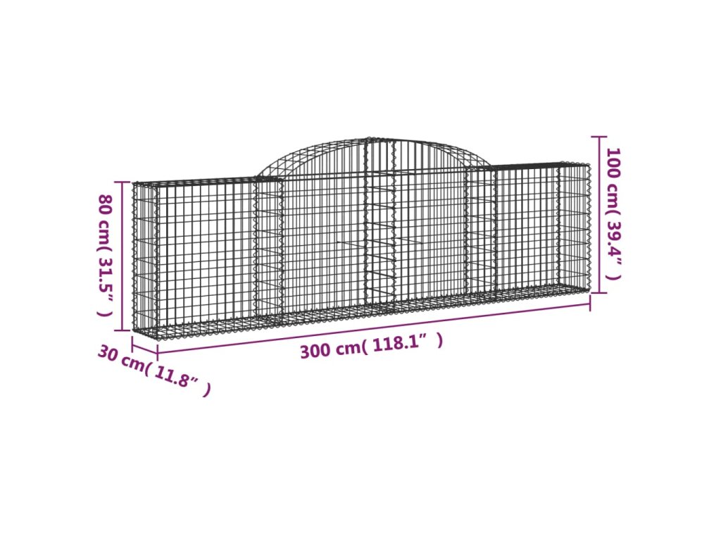 Klenuté gabionové koše 8 ks 300x30x80/100 cm pozinkované železo 3146509