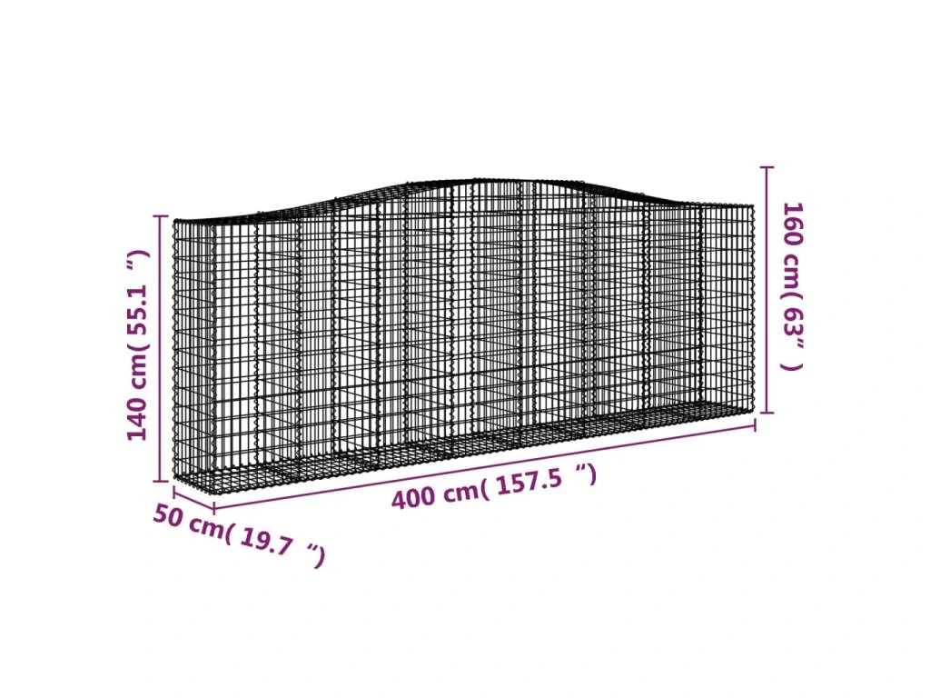 - Stabilní konstrukce: Klenutá gabionová klec je určená k naplnění kamením nebo štěrkem, aby byla dostatečně stabilní.