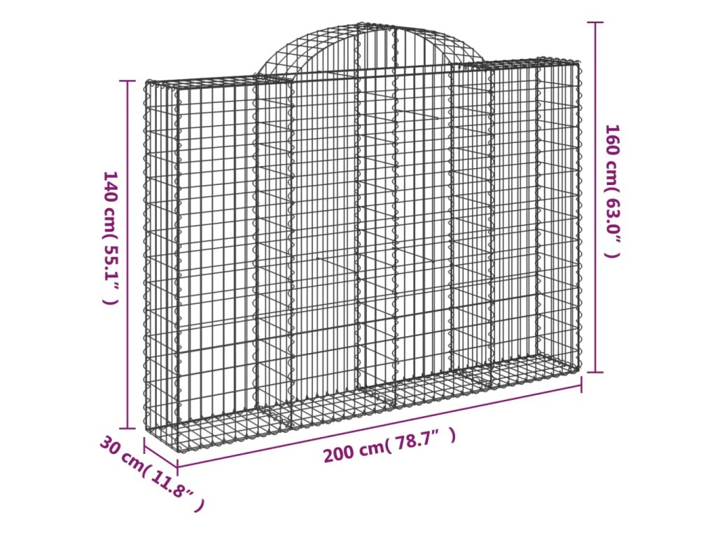 Klenuté gabionové koše 9 ks 200x30x140/160cm pozinkované železo 3146159