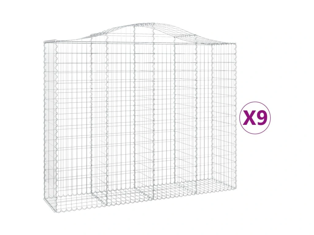Klenuté gabionové koše 9 ks 200x50x160/180cm pozinkované železo 3145710