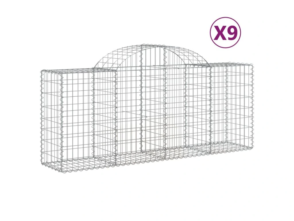Klenuté gabionové koše 9 ks 200x50x80/100 cm pozinkované železo 3146306